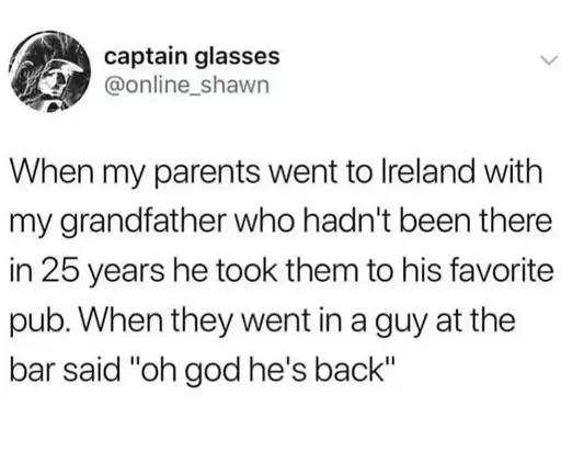 minus-squarekrooklochurm@lemmy.calinkfedilinkarrow-up46·3 days agoAlso the Irish, English, and Scottish have a very refined sense of sarcasm that most North Americans simply don’t understand. It’s very on brand for Irish humour.
