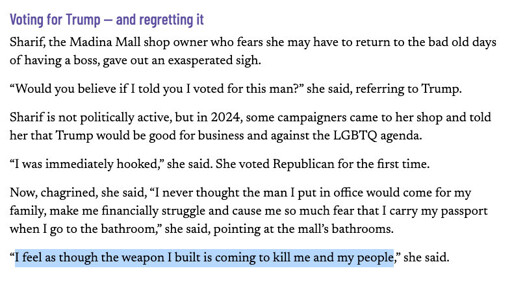 It also astounds me that people with names like sharif would ever feel safe voting red at all let alone for trump. But no, gotta hurt the gays for… checks notes having literally zero effects on any aspect of my life.